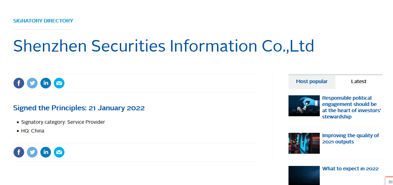 2022年1月,公司正式成為負責任投資原則(簡(jiǎn)稱(chēng)“PRI”)簽署成員,標志著(zhù)公司ESG相關(guān)工作進(jìn)一步接軌國際,ESG指數業(yè)務(wù)發(fā)展邁上新臺階。